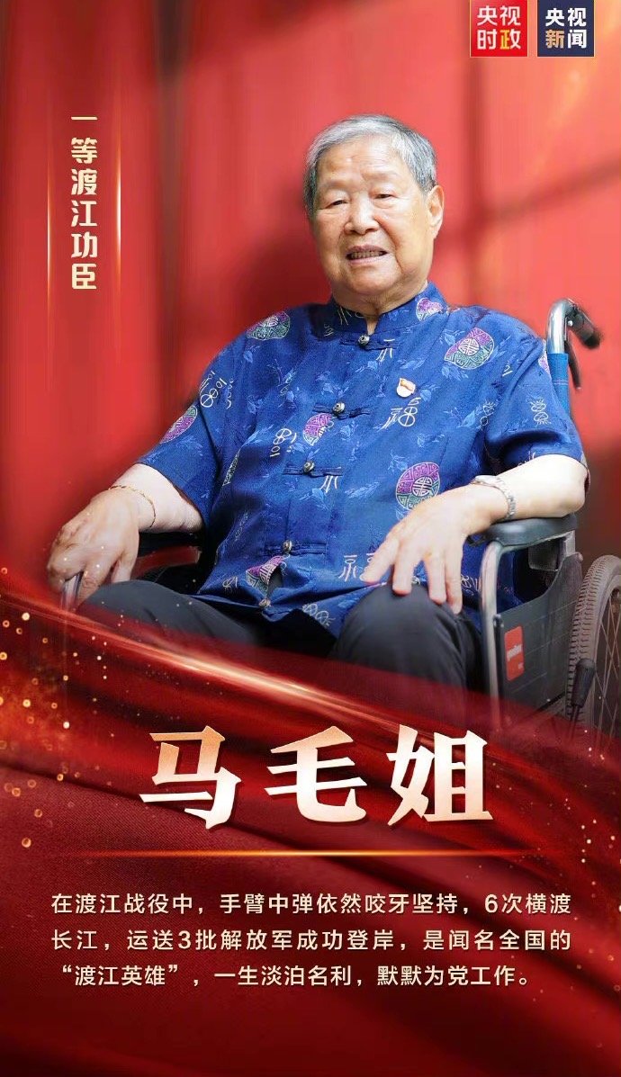 馬毛姐,女,漢族,1935年9月生,解放戰爭時期古代英雄模范的杰出代表,著名的“過江英雄”。渡河之戰,年僅14歲的他就加入了“渡河突擊隊”。盡管中彈,他依然咬緊牙關,6次敢于橫渡長江,攜3批解放軍順利登陸。毛主席親切接見并題詞“毛姐:努力學習,天天向上”。